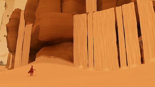 Journey – это платформер. Вы сможете кататься на больших песчаных волнах. В игре собираются разбросать кусочки материи, собрав которые, их можно будет использовать как парашют.