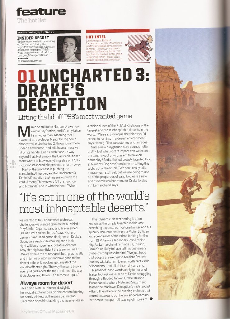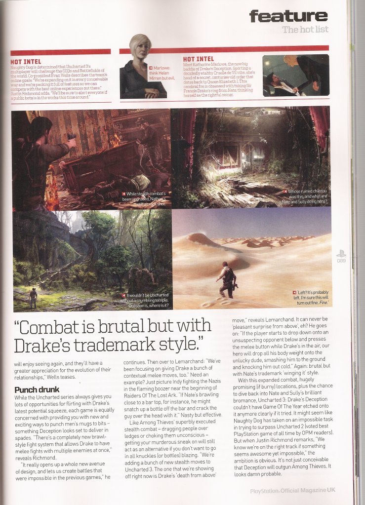 В сети появилась парочка сканов из журнала Official PlayStation Magazine UK, на страницах которого во всем своем великолепии фигурирует знакомый нам до боли Дрейк со своим закадычным другом Салли. Глядя на сканы, до сих пор остается большой загадкой один вопрос. Кто же так смог избить двух наших друзей? Ведь Натан попадал и не в такие передряги, а потом без особых проблем выбирался из них.